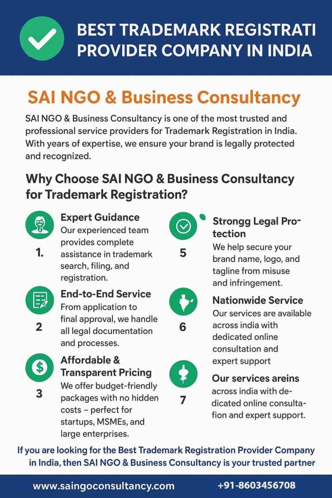 Trademark Registration 2025: Step by Step Guide for NewbieBy saingoconsultancy@gmail.com / September 25, 2025 A trademark is a powerful tool for brand protection, serving as a unique identifier for your products and services. In India, registering a trademark gives you legal rights and helps prevent others from using a similar name or logo that could confuse consumers. This article provides a comprehensive guide on trademark registration, covering the process, costs, and key considerations for 2025. Here is the complete updated guide on How to register for trademark in India. Quick A trademark is a brand identifier (word, logo, slogan, shape, etc.) that distinguishes your goods/services. In India the process is handled by the Controller General of Patents, Designs & Trade Marks (IP India). You file online (recommended) using the official forms (e.g., TM-A for new applications). Typical timeline: if there are no objections or oppositions, registration often completes in ~12–18 months; objections/oppositions can extend this. Official government filing fees (per class, e-filing, current schedule): ₹4,500 (individual/startup/SME) and ₹9,000 (others). Expedited processing and other fees vary. (See official fee schedule.) What is Trademark Registration? Trademark registration is the legal process of registering a brand name, logo, slogan, or any other unique identifier with the Controller General of Patents, Designs, and Trademarks. This government body, under the Ministry of Commerce and Industry, is responsible for granting intellectual property rights in India. A registered trademark gives the owner exclusive rights to use the mark and take legal action against infringers. The Significance of a Trademark Registration Mark Once your trademark is successfully registered, you are legally entitled to use the trademark registration mark (®). This symbol signifies that your brand name or logo is officially protected. Before registration, you can use the ™ symbol to indicate that you are claiming rights to the mark, but it does not provide the same legal protection as the ® mark. Trademark Registration in India: The Procedure The trademark registration procedure is a multi-step process that can take several months to complete. Here is a step-by-step breakdown: Trademark Search: Before you file an application, it is crucial to conduct a thorough trademark search of India’s public database. This helps you determine if your proposed name or logo is already registered or is too similar to an existing one. A pre-filing search minimizes the risk of rejection and potential legal disputes later. You can perform this search on the official IP India portal. Select the Right Trademark Class: Trademarks are classified into 45 different categories based on the Nice Classification system (Classes 1 to 34 for goods and Classes 35 to 45 for services). You must identify the correct class(es) for your business. For example, a clothing brand would typically fall under Class 25, while a marketing agency would be in Class 35. Incorrect classification can lead to application delays or rejection. Prepare and File the Application: The application for trademark registration is filed using Form TM-A. You can file it online through the IP India portal, which is the most recommended method due to its speed and efficiency. The application requires details such as: Applicant’s information (name, address, type of entity) The proposed trademark (wordmark or logo in JPEG format) Description of goods or services Date of first use (if applicable) Examination by the Trademark Office: Once filed, the trademark office examines the application to ensure it complies with the Trade Marks Act, 1999. The examiner will check for similarities with existing trademarks and may raise objections under sections like Section 9 (absolute grounds for refusal) or Section 11 (relative grounds for refusal). Responding to Objections: If an objection is raised, you will receive an examination report. You must file a detailed and well-drafted response within the stipulated time (usually 30 days) to address the objections. If the response is accepted, the application proceeds. If not, a show-cause hearing may be scheduled. Publication in the Trademark Journal: After the application is accepted, the trademark is published in the official Trademark Journal. This publication period lasts for four months, during which any third party can file an opposition to your application if they believe it infringes on their rights. Registration and Certificate Issuance: If no opposition is filed or if any opposition is resolved in your favor, the trademark is officially registered. The Registrar of Trademarks will then issue a registration certificate. Once you have this certificate, you can legally use the ® symbol. Trademark Registration Cost in India The trademark registration cost in India is primarily composed of two parts: the official government fee and any professional fees if you hire an agent or lawyer. How Much Does a Trademark Registration Cost in India? The government fee for filing a trademark application varies based on the type of applicant and the number of classes. Applicant TypeOnline Filing Fee (Per Class)Offline Filing Fee (Per Class)Individual/Startup/Small Enterprise₹4,500₹5,000Others (Company/LLP/Trust)₹9,000₹10,000 Note: Startups and MSMEs (Micro, Small, and Medium Enterprises) are eligible for a 50% rebate on the government fee. Cost Per Class: The fees are charged on a “per class” basis. If you need to register your brand in multiple classes (e.g., a company selling both clothing and cosmetics), you must pay the fee for each class. Additional Costs Beyond the initial filing fee, there may be other costs involved, especially if objections or oppositions arise. These can include: Objection Reply Fees: Many professionals charge a separate fee for drafting and filing a reply to an examination report. This can range from 